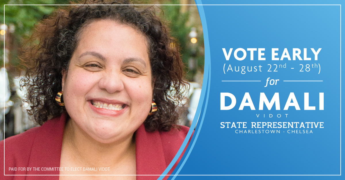 Graphic for Damali Vidot for State Representative. Part of a campaign package for the Committee to Elect Damali Vidot.